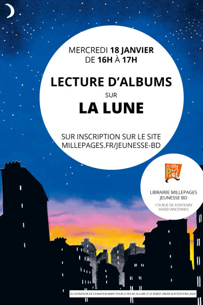 Venez à la librairie écouter des histoires sur la Lune avec différents albums autour de la thématique !