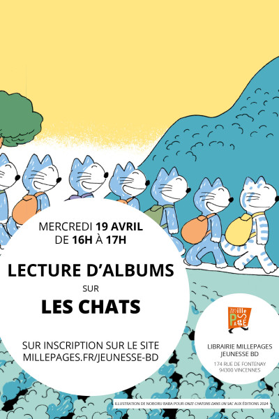 Venez à la librairie écouter des histoires sur les chats avec différents albums autour de la thématique !