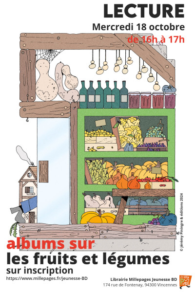Venez à la librairie écouter des histoires sur les fruits et légumes avec différents albums autour de la thématique !