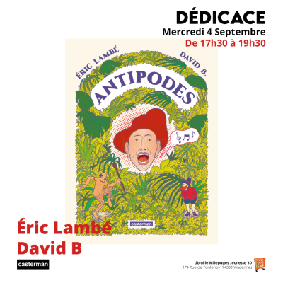 Nous vous invitons à rencontrer le dessinateur Eric Lambé et le scénariste David B. , en dédicace à l'occasion de la parution de la bande dessinée Antipodes aux éditions Casterman.