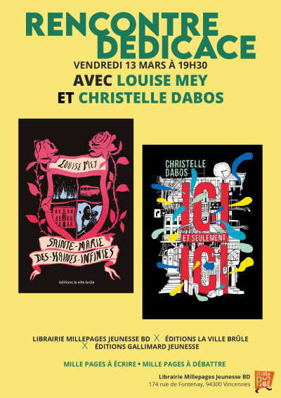 Dans le cadre de notre deuxième cycle d'événements Mille Pages à écrire, Mille Pages à débattre autour des inégalités et discriminations, nous vous invitons à une rencontre croisée entre Louise Mey et Christelle Dabos autour de leurs romans respectifs Sainte-Marie-des-Haines Infinies...