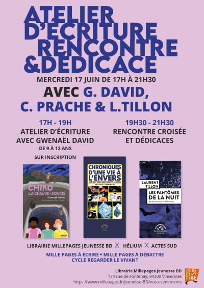 Dans le cadre de notre cycle d'événements "Regarder le vivant", nous avons le plaisir d'accueillir à la librairie Gwenaël David autour de la collection de romans illustrés "Sur les traces" aux éditions hélium à l'occasion de la parution de Chiro la chauve-souris .